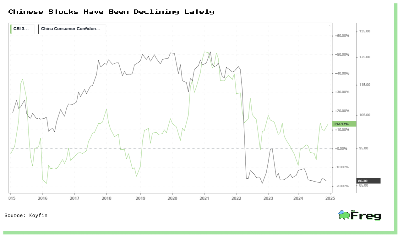 The demographic shift is affecting various sectors of the Chinese economy, which in turn impacts stock market performance. Consumer-focused companies are particularly vulnerable as the shrinking population leads to reduced domestic demand. Conversely, healthcare and elderly care stocks may see increased interest as the aging population creates new market opportunities. Despite these challenges, the Chinese government's efforts to stimulate the economy and support key industries could help mitigate some of the negative effects on the stock market in the short term. The recent stimulus resulted in modest bump with CSI 300 up by 16.5% in 2024.