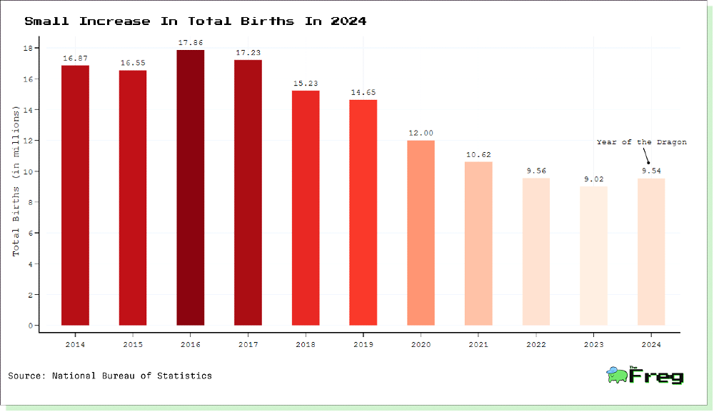 According to China's National Bureau of Statistics, the country's population declined for the third consecutive year in 2024, dropping by 1.39 million to 1.408 billion, despite a slight increase in births during the auspicious Year of the Dragon.