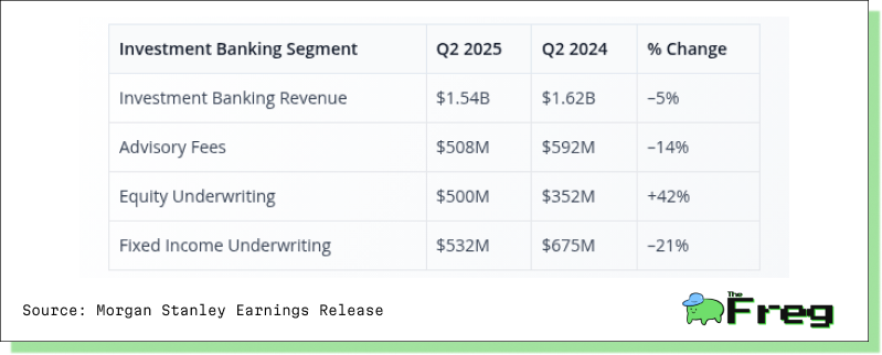 Morgan Stanley’s Q2 2025 earnings confound expectations: the firm posted net revenues of $16.8 billion and earnings per share (EPS) of $2.13—both of which beat analyst estimates. Yet, in a paradoxical turn, Morgan Stanley’s shares slipped by nearly 2% following the results. Behind the headline numbers lies a split: the trading business soared, while investment banking sputtered—raising the question of whether this is a temporary, cyclical lull or the result of deliberate reshaping at one of Wall Street’s iconic institutions.