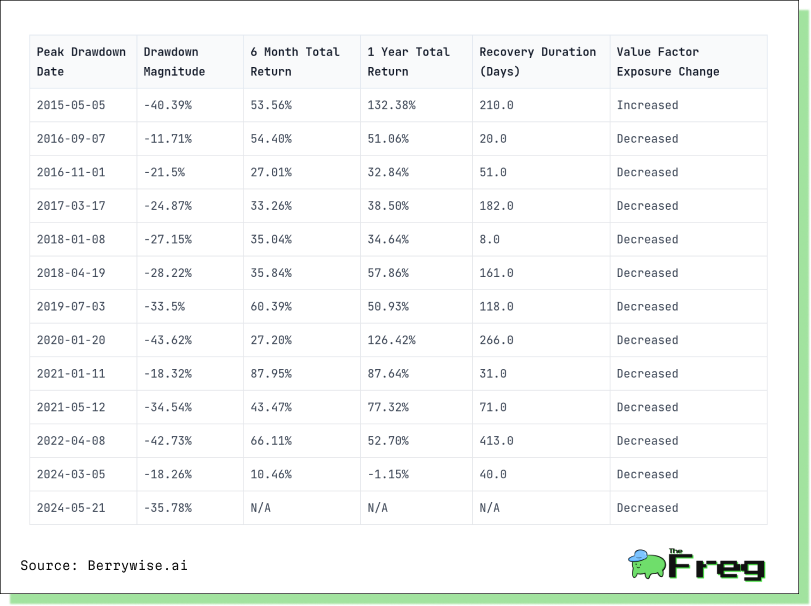 - Average 6-Month Return After Drawdown: 44.56%