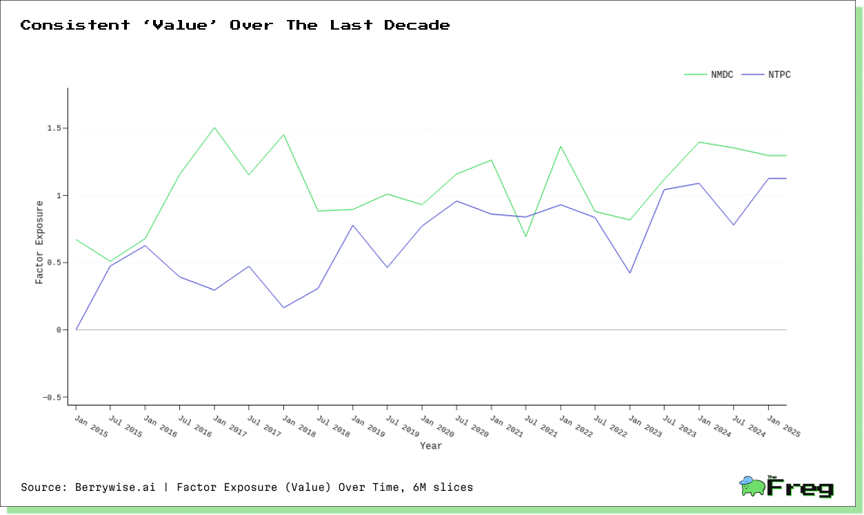 Value investing has evolved beyond simply identifying stocks with low price-to-earnings or price-to-book ratios. Today's sophisticated approach examines a stock's exposure to 'Value' factor – essentially how strongly a stock's behavior correlates with the broader value investment style. Our analysis of NMDC and NTPC against our 'Value' factor reveals distinct value characteristics for both companies, but with notable differences in how this value exposure manifests, particularly during market stress.