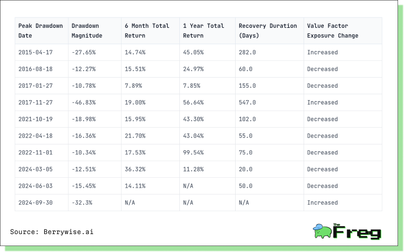 - Drawdowns with Increased Value Factor Exposure: 3 (30.0%)