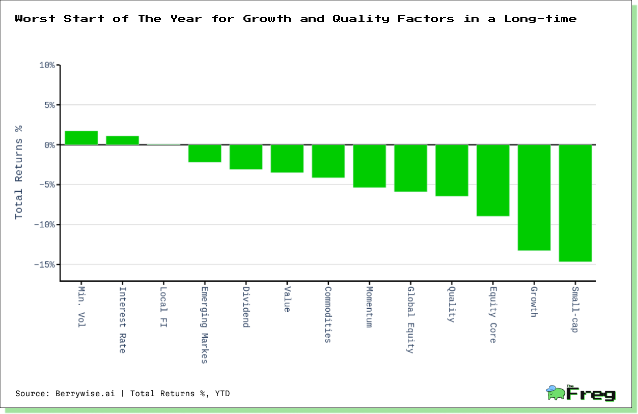 Small-cap stocks, already the worst YTD performer with a 14.7% decline, suffered additional pain during the tariff shock, dropping 7.8% in just eleven days. Their vulnerability stems from higher domestic exposure and less pricing power to absorb tariff-induced cost increases.