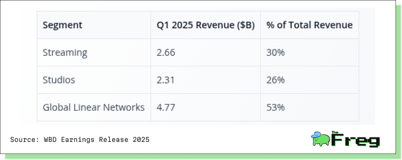 - Linear TV decline outpacing streaming growth.